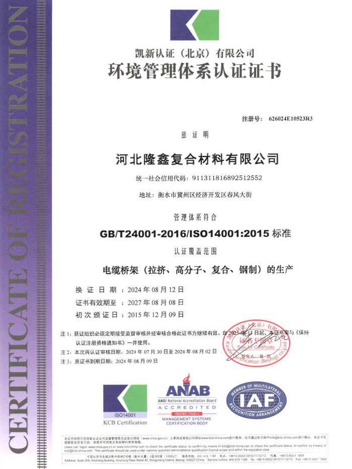 環(huán)境管理體系認(rèn)證證書(英文版)
